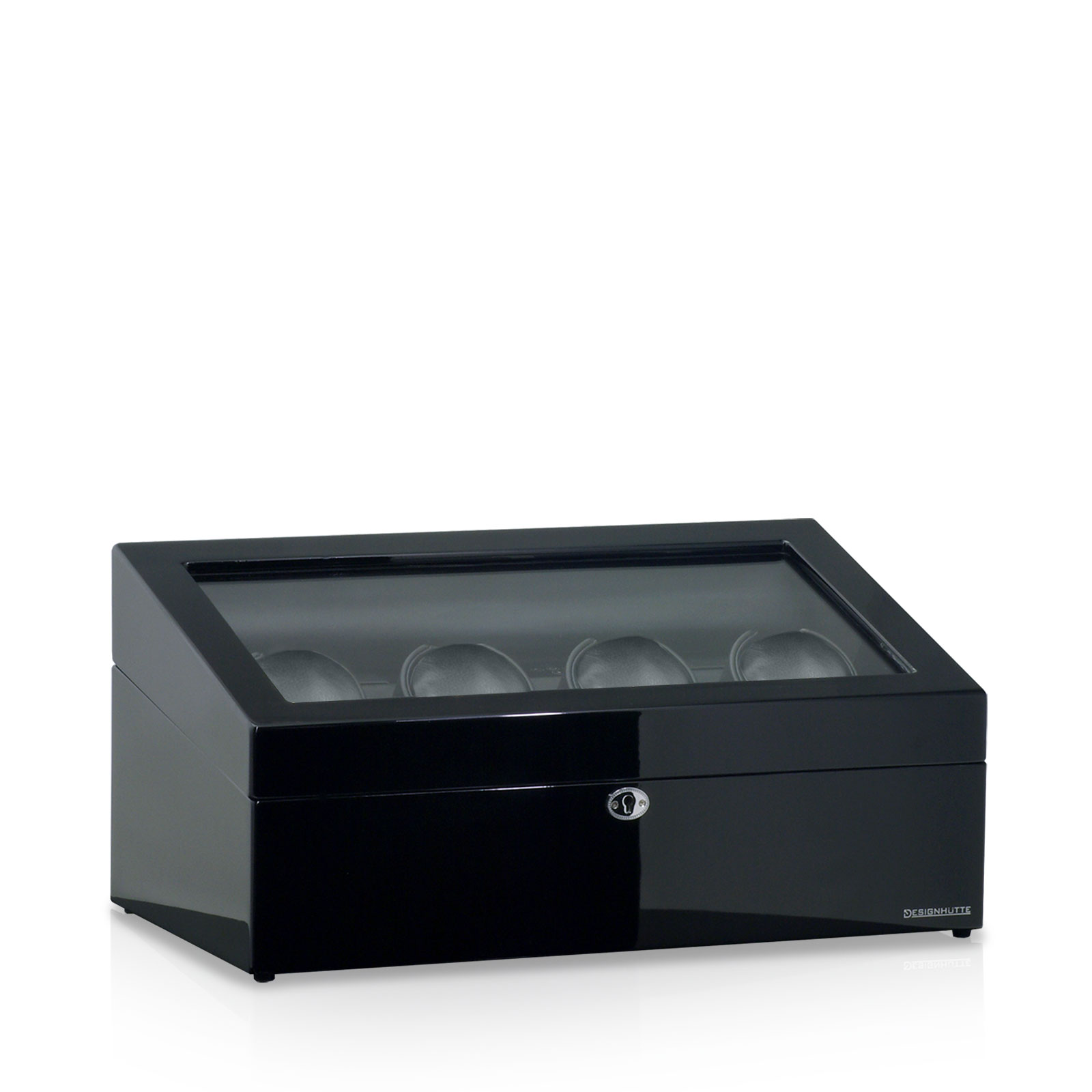 Umhüllt von einem edlen Holzgehäuse mit einer perfekt aufgetragenen mehrschichtigen Hochglanzlackierung, verkörpert jeder Uhrenbeweger der "München" Serie nicht nur eine Aufbewahrungsmöglichkeit, sondern auch ein Ausdruck von Eleganz und Geschmack. Der Kontrast des dunklen, glänzenden Äußeren zum hellgrauen, weichen Velours des Innenraums hebt die Uhren hervor und betont zugleich deren Wertigkeit.
