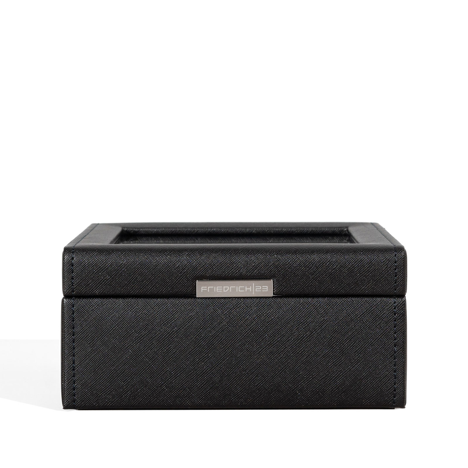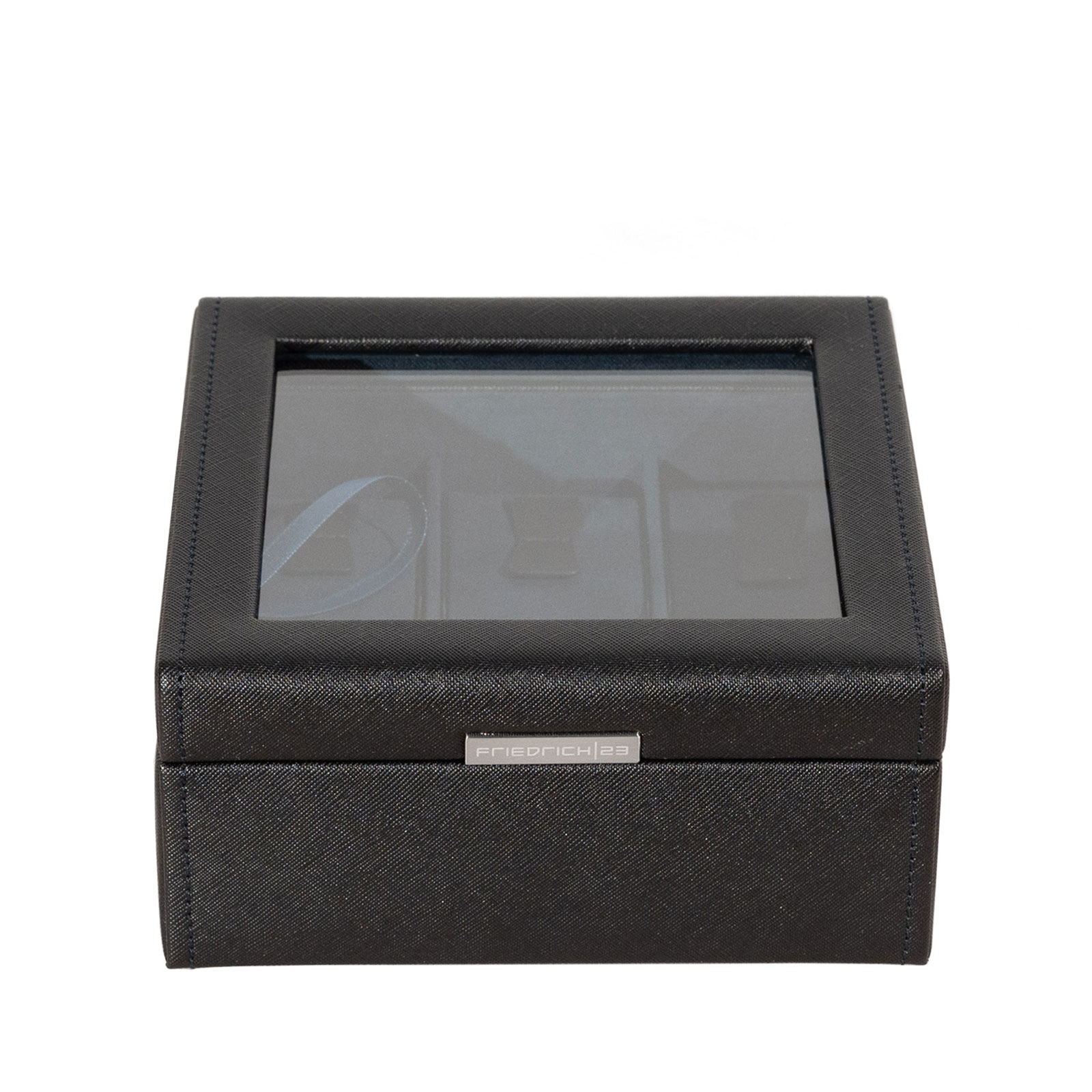 L'édition sobre en motif grain croisé ajoute une touche d'élégance et de modernité. Le couvercle en verre avec une sangle de maintien permet une vue claire sur les montres présentées, tandis que l'extérieur en motif grain croisé dégage un charme intemporel.