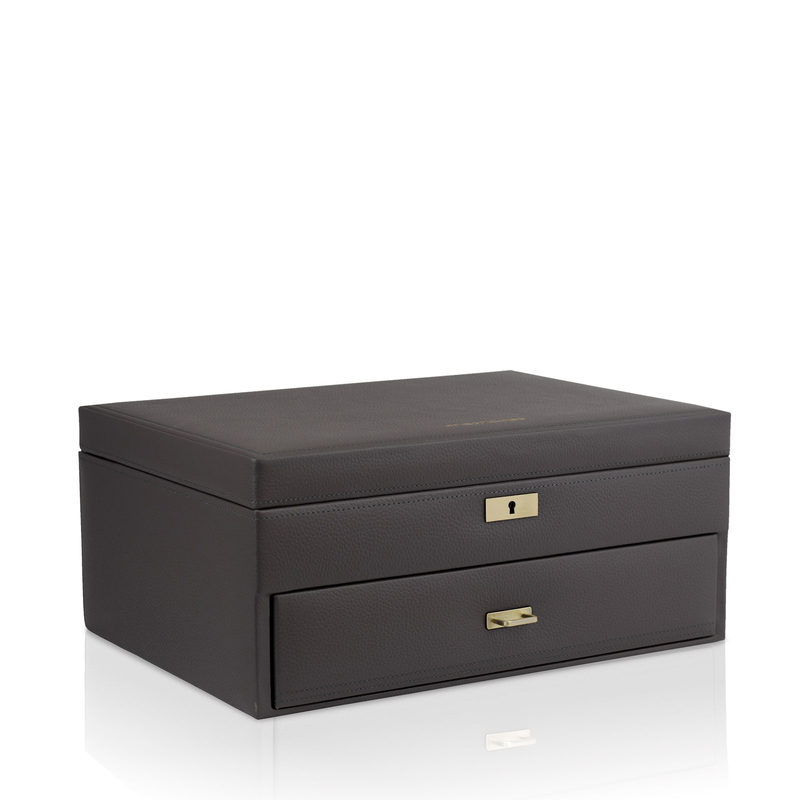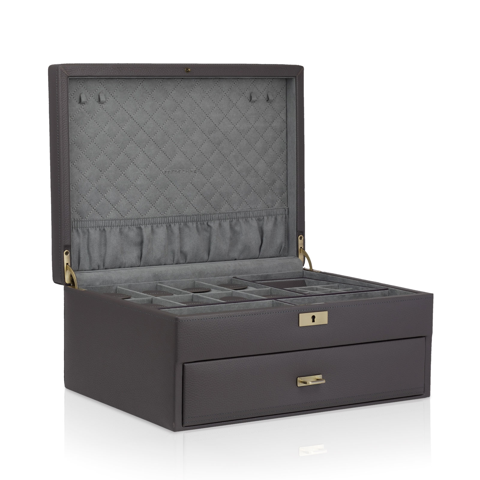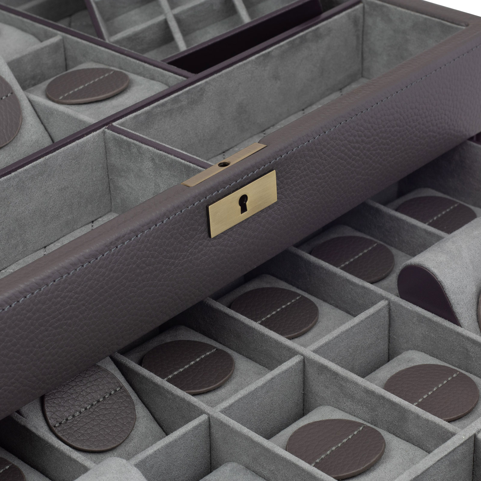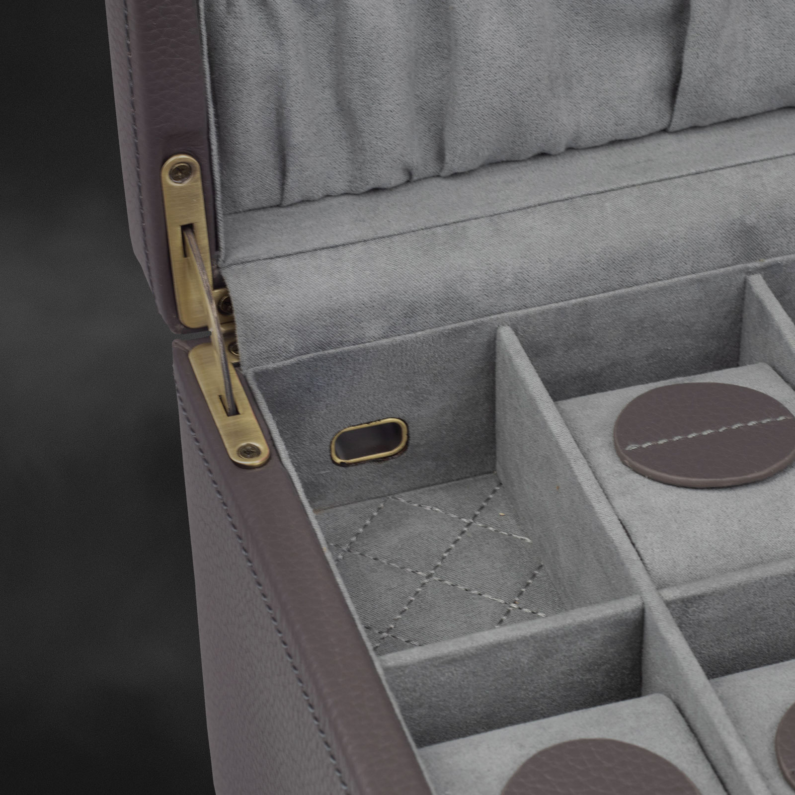 Cajón con tirador de latón cepillado y 12 almohadillas para relojes