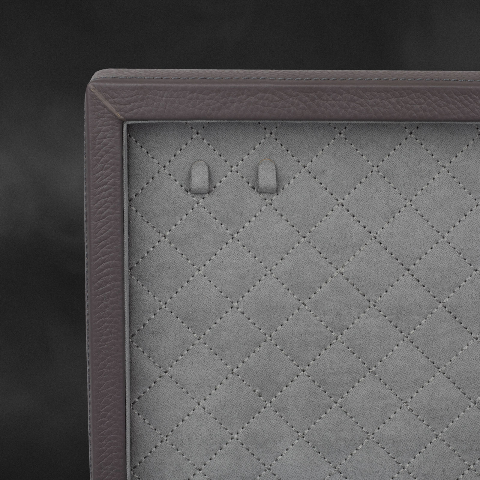 Elegante bordado a cuadros en el interior de la tapa y en el compartimento superior