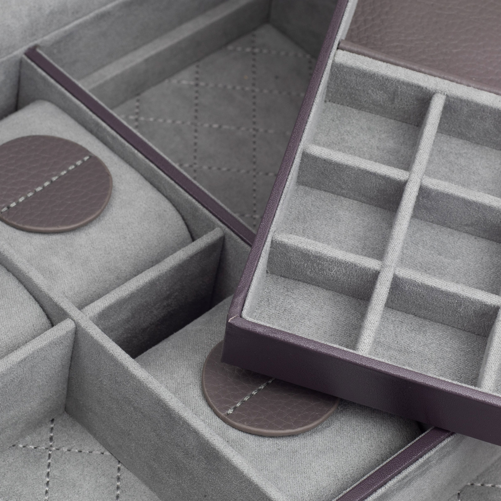 Inserto extraíble, dividido en dos compartimentos para anillos, gemelos y accesorios